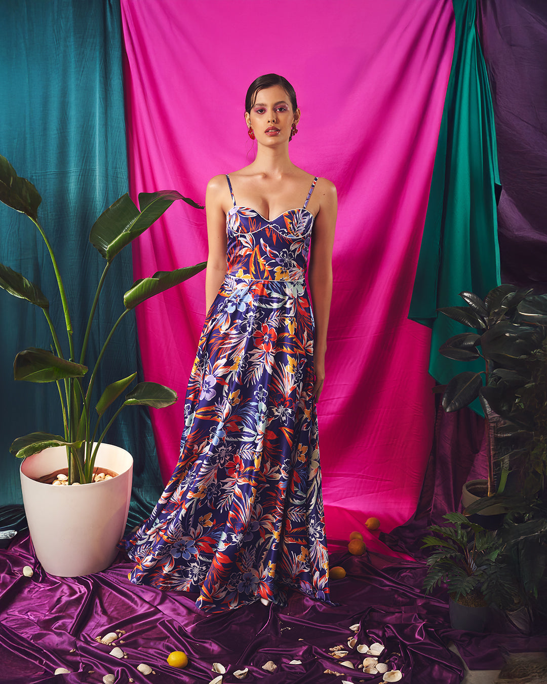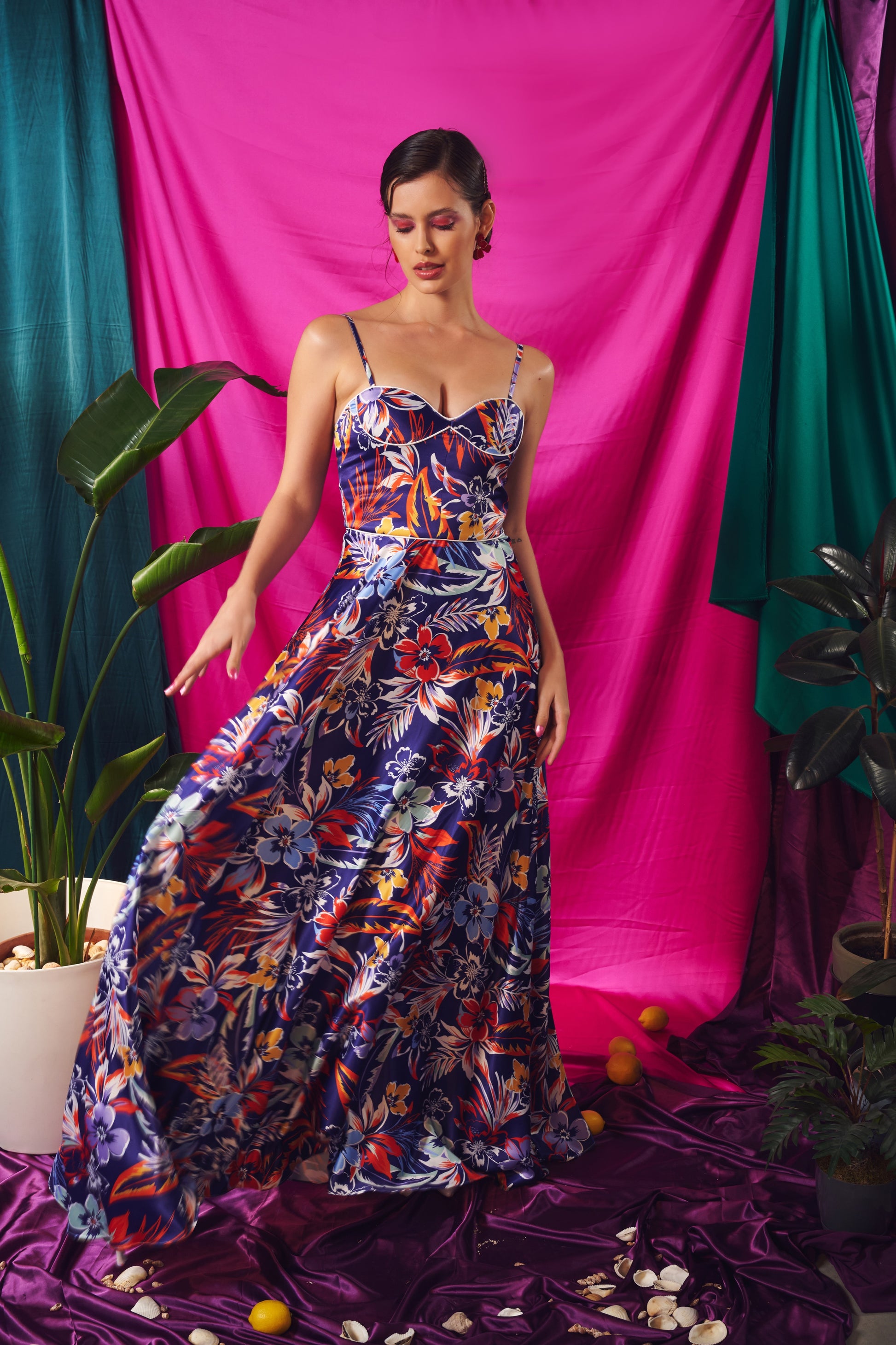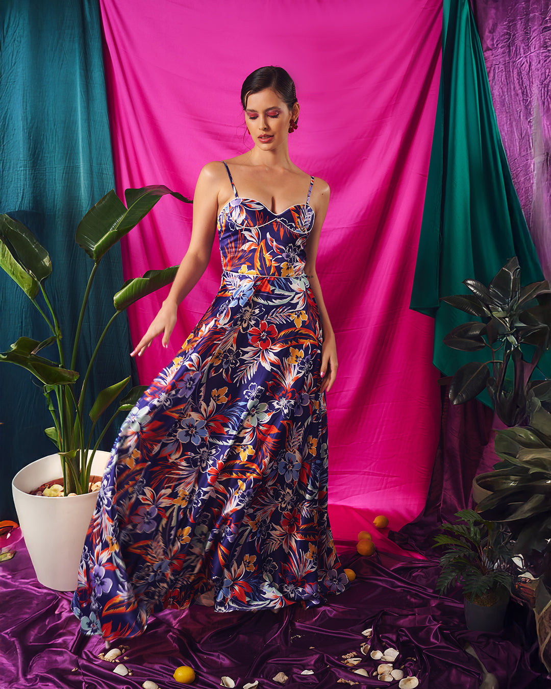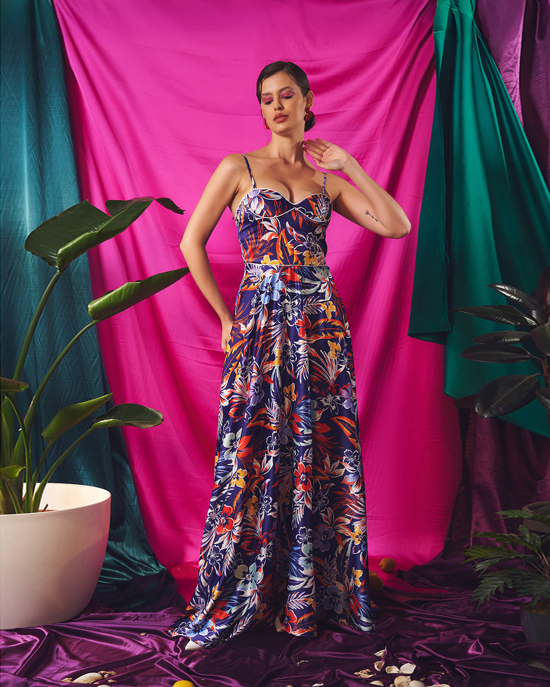 Liora – Bustier Maxi Dress in Twilight Tropic